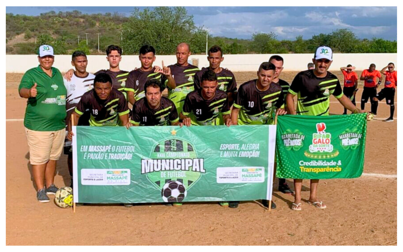 Na tarde desta sexta-feira (12/12), a Prefeitura de Massapê do Piauí, através da Secretaria Municipal de Esporte e Lazer, realizou a partida que definiu o terceiro colocado do Campeonato de Futebol do município. O jogo aconteceu no Estádio Municipal Nestorzão e contou com a participação das equipes Porteiras e Galo da Sorte, reunindo bom público e movimentando a comunidade local.