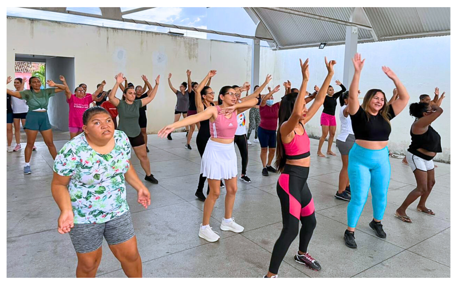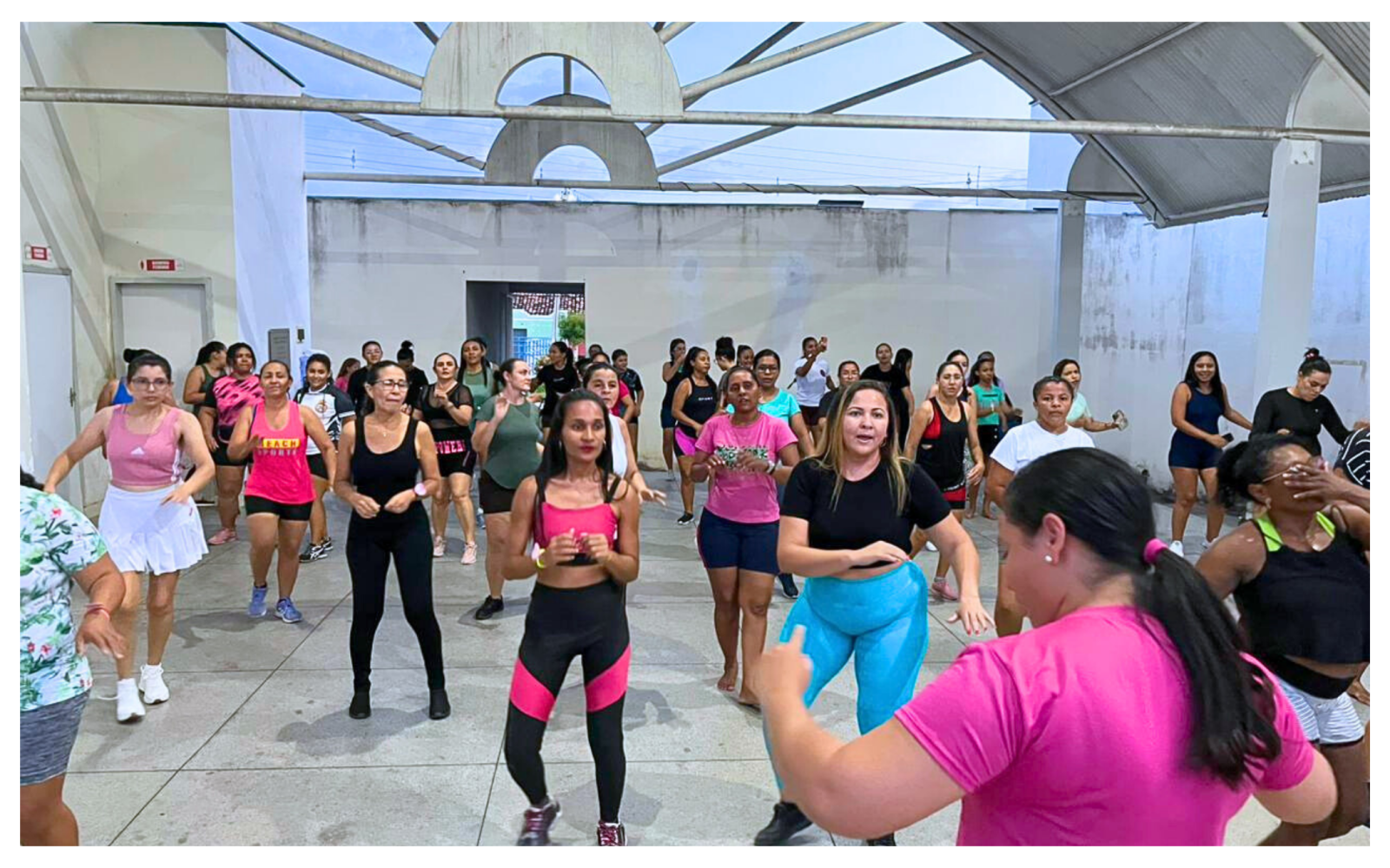 A atividade reuniu mais de 30 participantes em uma aula de dança conduzida pela instrutora Maria Clara, oficineira do Serviço de Convivência e Fortalecimento de Vínculos (SCFV). Durante o encontro, as participantes participaram de momentos de descontração e bem-estar, com músicas e coreografias que incentivaram o movimento e a integração do grupo.