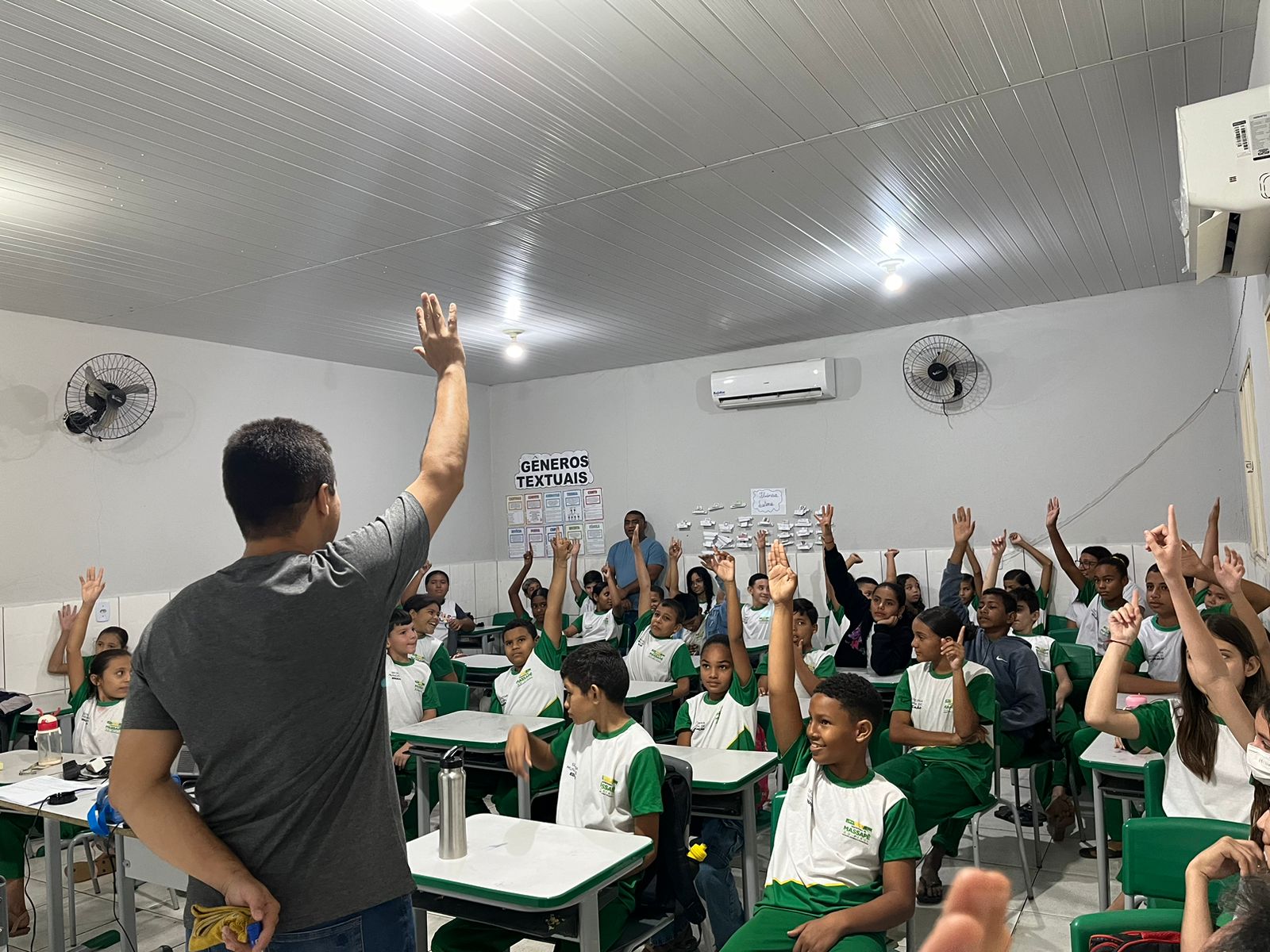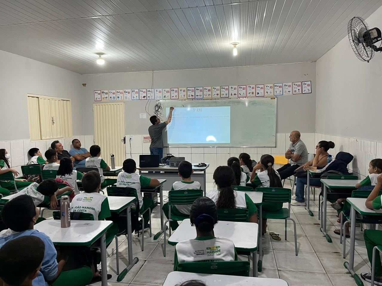 A Escola Municipal João Manoel da Costa promoveu, nesta semana, uma reunião com as turmas dos 5º e 9º anos, com foco na preparação dos estudantes para o Sistema de Avaliação da Educação Básica (SAEB) 2025. O encontro contou com a participação do professor Júnior Coutinho, que apresentou orientações e esclarecimentos sobre a avaliação, ressaltando sua importância para o desenvolvimento da educação no município.