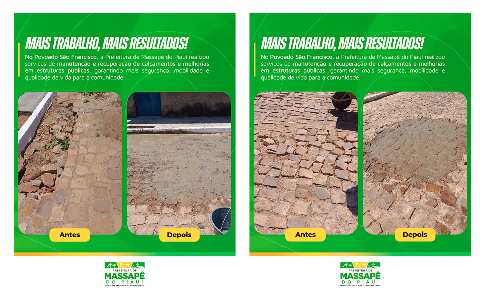 A Prefeitura de Massapê do Piauí realizou serviços de manutenção e recuperação de calçamentos, além de melhorias em estruturas públicas, no Povoado São Francisco. As ações tiveram como objetivo garantir mais segurança, mobilidade e qualidade de vida para os moradores da comunidade.
