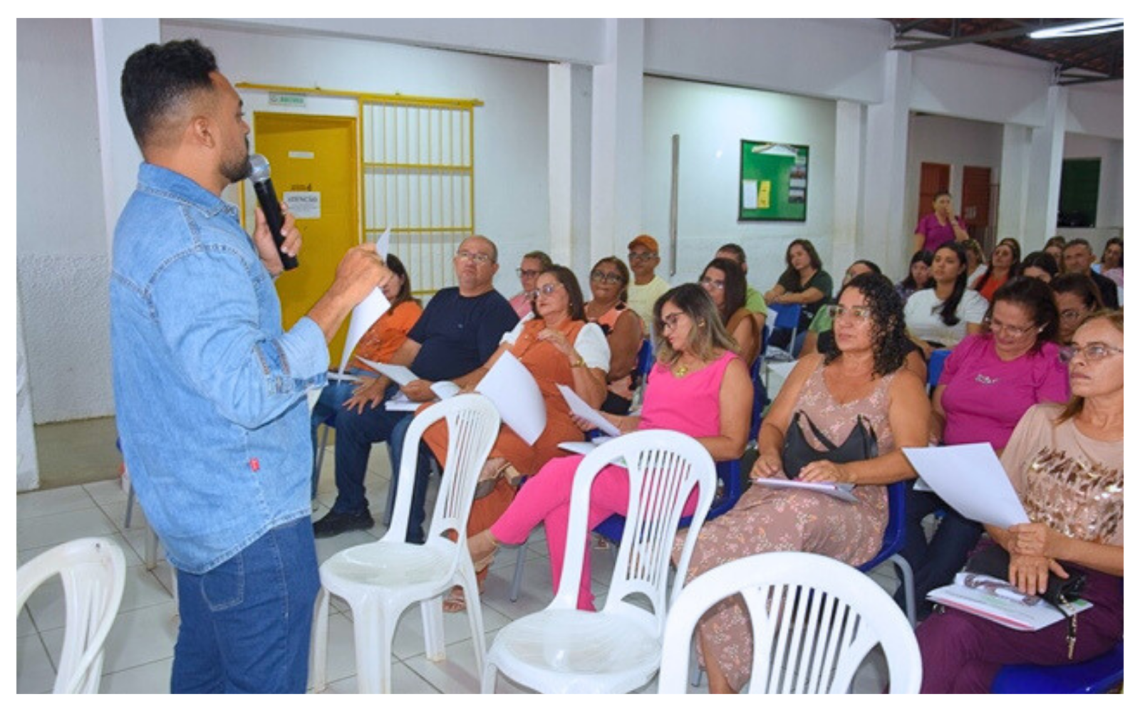 A abertura contou com credenciamento dos participantes, composição da mesa de honra e uma dinâmica conduzida pelo pedagogo Helton Fernandes, que promoveu reflexões sobre o papel da educação e simbolizou o compromisso coletivo dos educadores com o ensino no município.