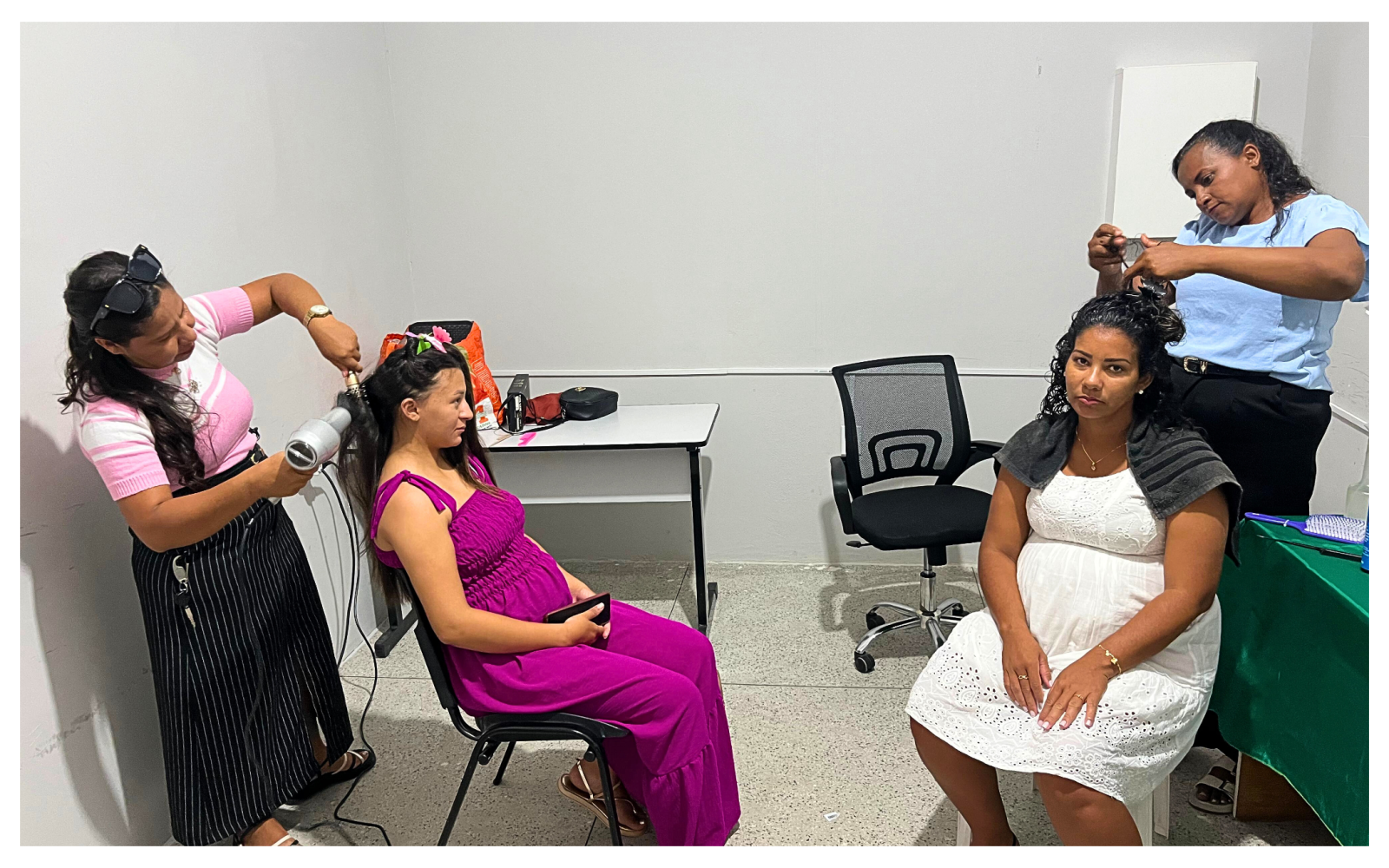 Durante a tarde, as atividades se concentraram nas Unidades Básicas de Saúde (UBS), com atendimento a gestantes. As ações incluíram imunização, aferição de pressão arterial, exames de glicemia, consultas médicas e avaliação das mamas, além de momentos de cuidado e bem-estar, como escovação de cabelos, maquiagem e coffee-break para as participantes.